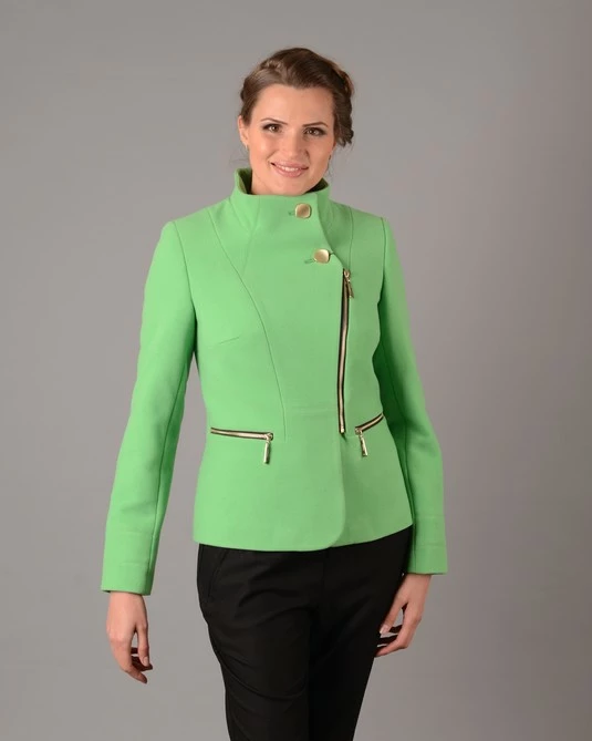 Жакет из кашемира молодежный. 2 прорезных кармана на молнии. Вортник стойка. Крой приталенный. Длина изделия 60см, Размерный ряд модели 40-48. Цвета - беж, бирюза, салатовый.