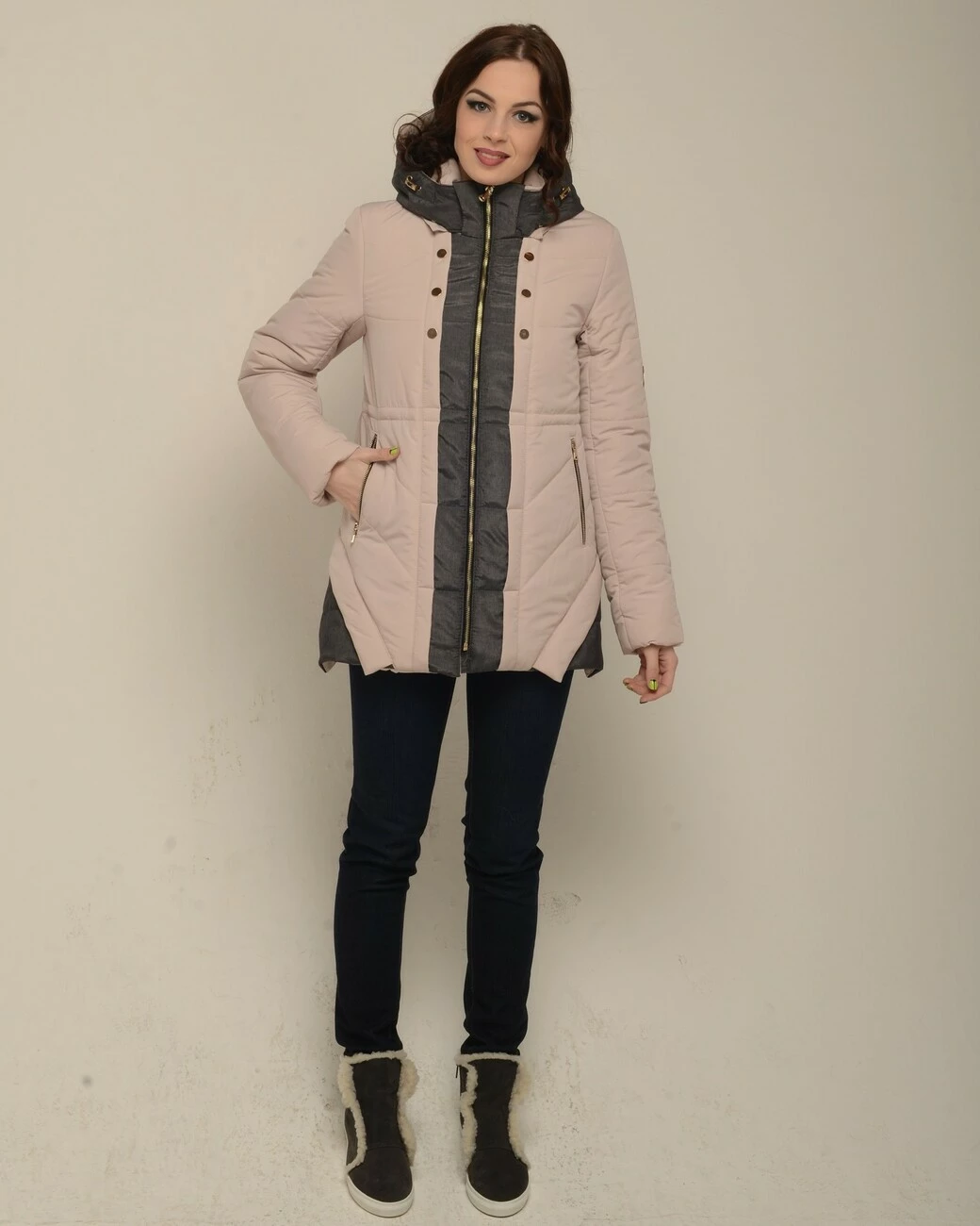 Куртка зимняя двухцветная беж 3035