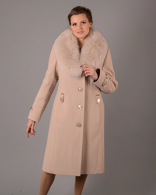 Зимнее женское пальто из кашемира, утеплитель- ватин. Ворот отложной (шаль), со съемным мехом натурального песца. 2 прорезных кармана, приталенное, без пояса. Длина изделия - 110см. В наличии есть капучино, слива и серый, беж и черный цвета. Размерный ряд модели - 48-56.