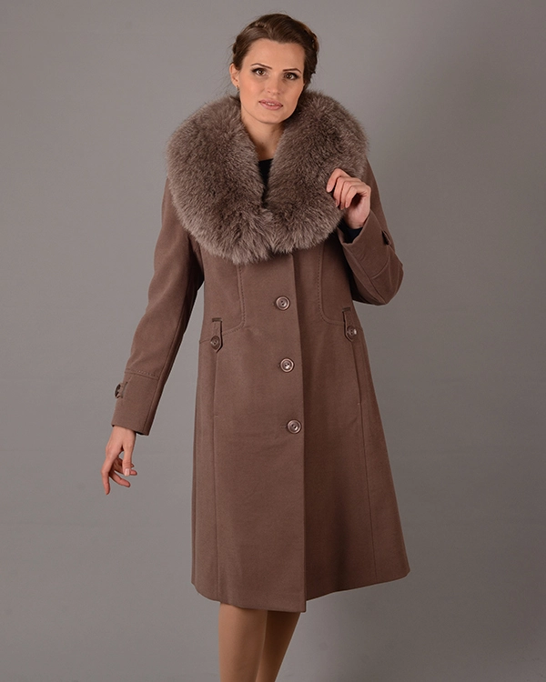 Зимнее женское пальто из кашемира, утеплитель- ватин. Ворот отложной (шаль), со съемным мехом натурального песца. 2 прорезных кармана, приталенное, без пояса. Длина изделия - 110см. В наличии есть капучино, слива и серый, беж и черный цвета. Размерный ряд модели - 48-56.