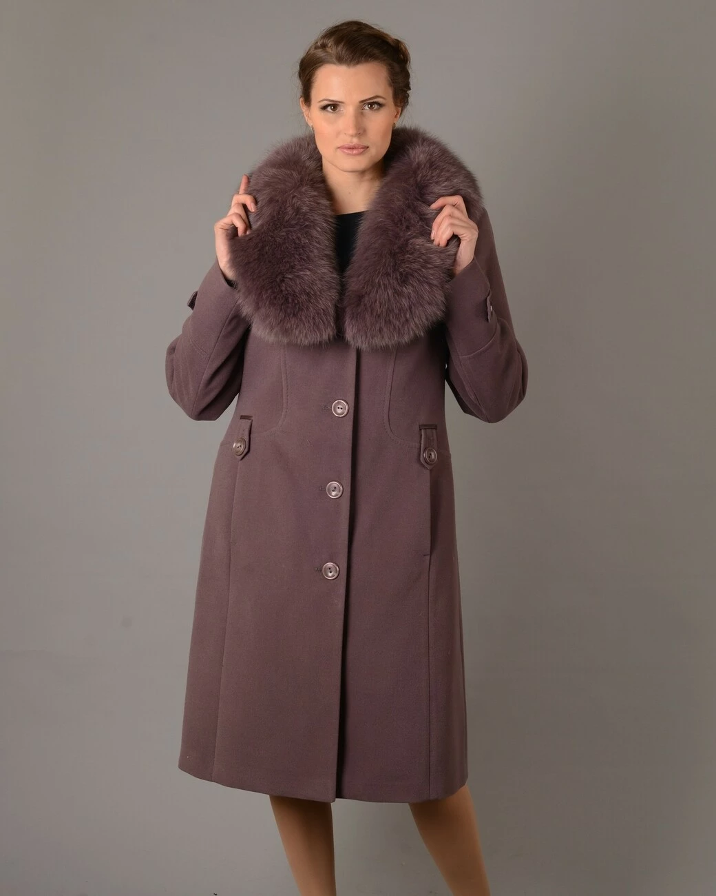 Зимнее женское пальто из кашемира, утеплитель- ватин. Ворот отложной (шаль), со съемным мехом натурального песца. 2 прорезных кармана, приталенное, без пояса. Длина изделия - 110см. В наличии есть капучино, слива и серый, беж и черный цвета. Размерный ряд модели - 48-56.