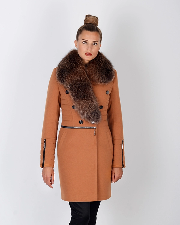 Полупальто на утеплителе (синтепон) с мехом песца, в наличии красный, электрик, темно-синий, рыжий цвета. Подкладка вискоза, материал пальто поливискоза. Мех съемный, 2 прорезных кармана, застежка пуговицы, длина 95 см.